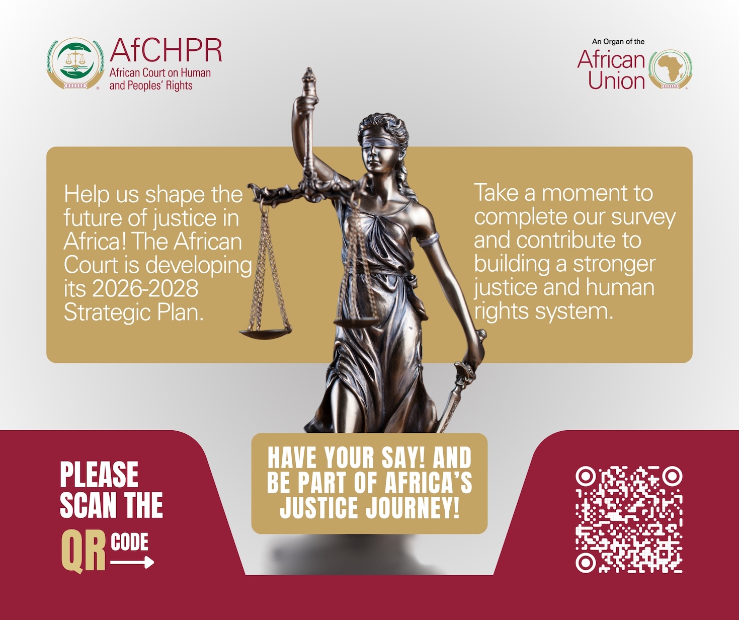 As the African Court develops its Strategic Plan for 2026-2028, your insights are crucial. This survey seeks your perspectives on its future priorities to enhance its processes, outreach and overall effectiveness. We urge you to participate and help shape a more accessible and impactful African Court, truly embodying an “African Solution to African Problems”.