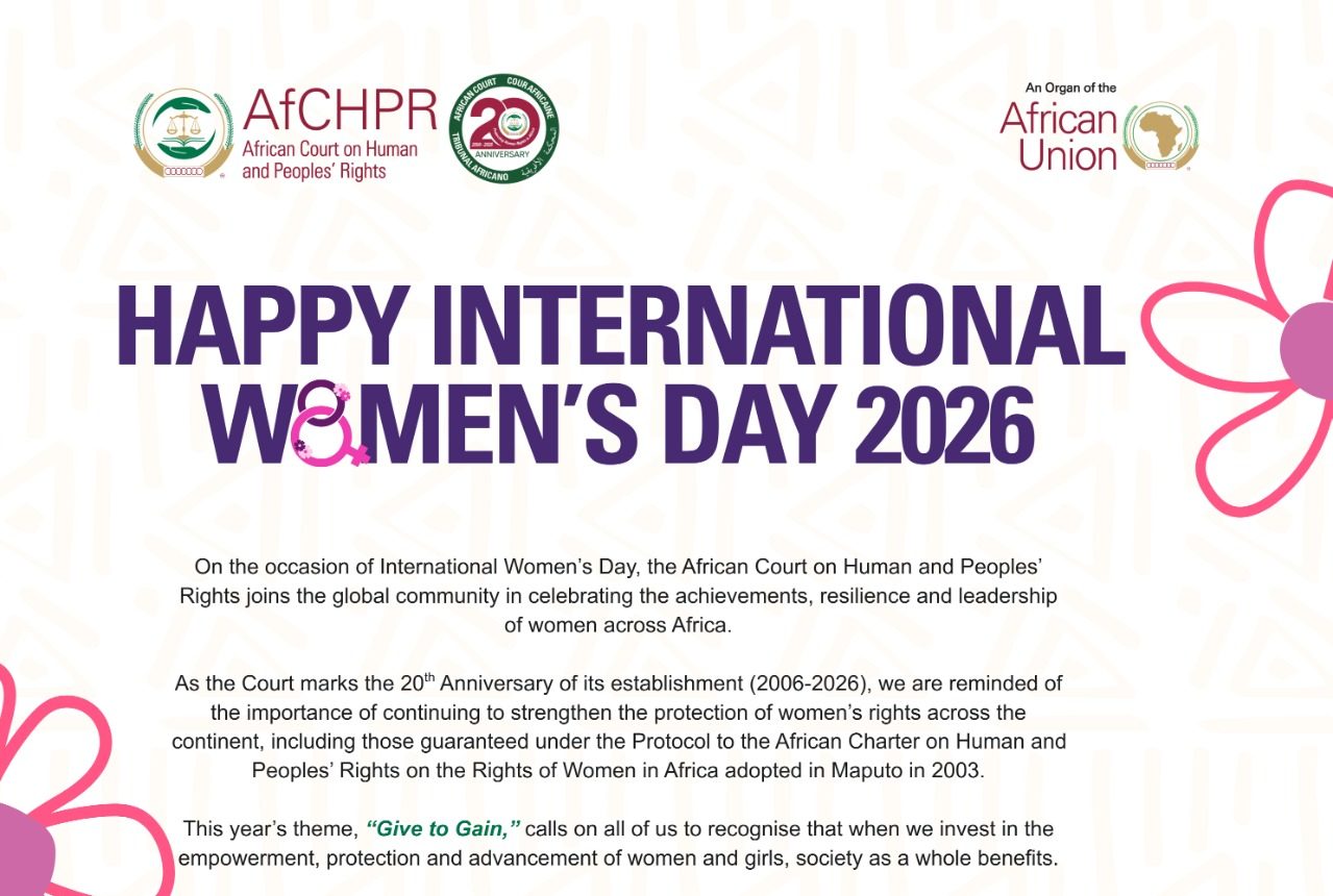 On the occasion of International Women’s Day, the African Court on Human and Peoples’ Rights joins the global community in celebrating the achievements, resilience and leadership of women across Africa.